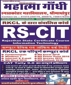 ओमप्रकाश मिठारवाल (अर्जुन अवार्ड) निशानेबाजी    ||    डिंपल सैनी (परीक्षा 2024) Economics में विश्वविद्यालय गोल्ड मेडल   ||    अनुराधा सैनी (परीक्षा 2024) Chemistry में विश्वविद्यालय गोल्ड मेडल   ||    Admission Open B.A., B.Sc., B.Com., BCA, M.A., M.Sc., M.Com., PGDCA (Session 2026-27)   ||    चौधरी बिरजू गोपाल पुत्र श्री गोपाल बाजिया (सोथलिया) IAS-2024 में चयन   ||    गजेंद्र कुमार पालीवाल (परीक्षा 2023) History में विश्वविद्यालय गोल्ड मेडल   ||    मोनिका कुमारी सैनी (परीक्षा 2022) Economics में विश्वविद्यालय गोल्ड मेडल   ||    सुनीता कुमारी (परीक्षा 2021) Botany में विश्वविद्यालय गोल्ड मेडल   ||    शिवानी गोपालका (परीक्षा 2018) ABST में विश्वविद्यालय गोल्ड मेडल & चांसलर (गवर्नर) गोल्ड मेडल   ||    बबीता कलवानिया (परीक्षा 2017) Pol.Sc. में विश्वविद्यालय गोल्ड मेडल   ||    अन्तिम कँवर शेखावत (परीक्षा 2016) BCA में विश्वविद्यालय गोल्ड मेडल   ||